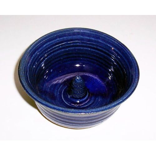 All pottery is created by hand from soft clay using the potter's wheel ~~ The clay used is durable stoneware ~~ Blue color with natural gray accent bottom finish ~~ The glazes are non-toxic ~~ Can be used in the oven, microwave and dishwasher, although handwashing will prolong their life ~~ I hope you enjoy using it as much as I enjoy making it! Made in America ~~Made in America ~~ The nice thing about handcrafted is no one of a kind piece - No one piece will look the same ~~ You will have your own individual one. ~~ There may be more or less green color on each one. - New, never been used.