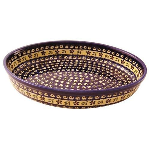 Bunzlauer Polish Pottery Oval Baker in Old Flower Gift Pattern by EuroQuest Imports. These beautiful Bunzlauer Bakers are made in keeping with the 200-year tradition of producing high-quality, hand-crafted stoneware in Boleslawiec, Poland. Each baker is signed with the artisans' initials and proudly displays the unique Zaklady back stamp. They are lead-free and safe for use in the oven, microwave, refrigerator and dishwasher.