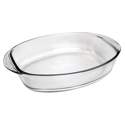Marinex Glass Bakeware production began over 50 years ago by Santa Marina, the largest glass manufacturer in Latin America. Located in Brazil, Santa Marina has been producing different glass products since 1895. The factory location is close to raw material deposits of boron and sand which is rich in color and quality. During the production process, these raw materials are combined using heat to make borosilicate glass. Borosilicate glass is resistant to changes in temperatures used in cooking and baking. The raw materials also give Marinex glass bakeware a slight bluish tint consistant throughout all pieces. Marinex Glass Bakeware offers several shapes and sizes that have countless uses in culinary activities and are prominent by their beauty, durability, and ease of cleaning. It can be used to prepare, bake, and serve food as well as to freeze prepared food. It is safe for both conventional ovens and microwave ovens. Marinex Bakeware can go from the freezer/refrigerator to a pre-heated oven where the oven temperature does not exceed 100C or 212F to start. However, Marinex Bakeware should not be used on stovetop burners or over a direct flame. This is a medium 3.4qt. oval baking dish and is 13-3/4" x 9-3/4" x 2-3/4" with grip styled handles at each end. All Marinex bakeware is dishwasher safe. Item #GD16663415.
